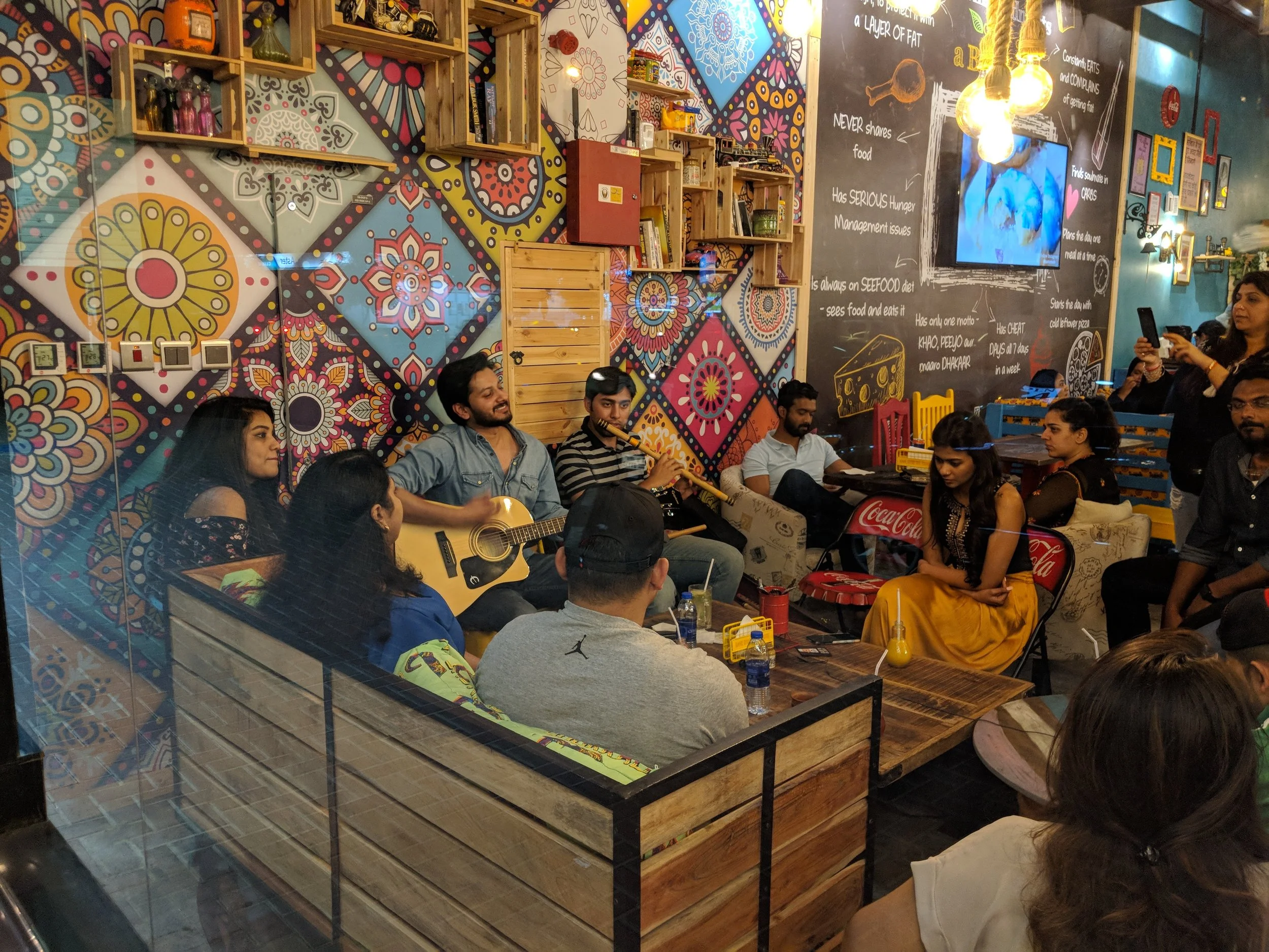 The relaxed, cozy atmosphere along with tongue-in-cheek placements of wall art is the key Bhukkad Ambience that customers fall in love with.
